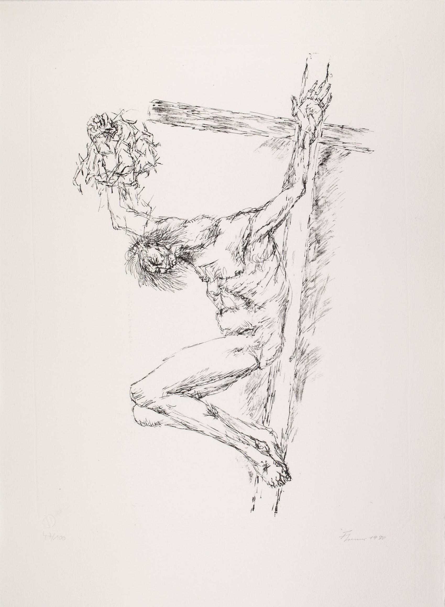 Variation zum Gekreuzigten, sich die Dornenkrone herunterreißend (Blatt 5 der Mappe „Der Gekreuzigte“)